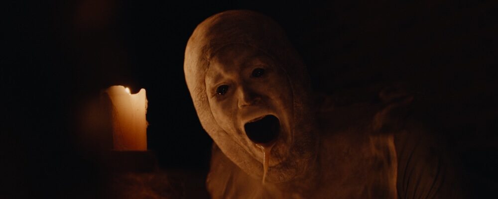 Nice houses have become the common sites for grotesqueries in horror, as seen recently in movies like “Companion” and “Bring Her Back.” Production designer Danny Vermette delivers a great one here that chills through how invitingly normal it looks. The setting is vital considering most of the film consists of Liz wandering, napping and sitting around the house, beginning to lose control over strange happenings. Perkins is smart enough to build up the tension by first hinting at the specters. A strange entity with an elongating neck moves out of focus without Liz noticing. A head seems to silently scream from the trash outside and a woman with a bagged head, flies buzzing around, silently appears in the kitchen. There are many more, so these are not total spoilers. Importantly, Perkins and cinematographer Jeremy Cox don’t rely heavily on CGI to create this environment. They rely on making the images rich and memorable through the framing and gothic lighting.