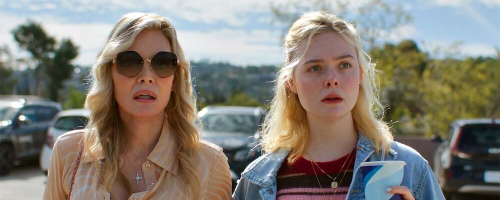 Margo (Fanning) opens the story as a talented writing student attending Fullerton College. Her literature professor, Mark (Michael Angarano), takes notice and encourages her gifts. He also invites her to hang out off campus which, of course, leads to them sleeping together. The younger student is swooned by his poems and charming banter in bed, ignoring the warnings of her friends and roommates. Soon enough, she is pregnant. In another unsurprising development, Mark is both a coward and married. Left with only the support of her mother, Shyanne (Michelle Pfeiffer), Margo decides to keep the baby and name him Bodhi. Nothing will go smoothly from here. After giving birth, Margo’s presence with a screeching infant irritates her roommates. She also needs help from Shyanne with her baby while goes to work at a quirky family restaurant. When Margo is fired for typically absurd reasons, she begins job hunting with little luck. Inspiration strikes when the single mom looks at the option of OnlyFans.